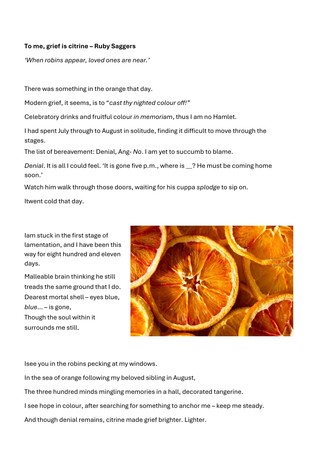 This page is a space for you to upload your writing, poems, artwork, drawings, photography (without people), to share your expressions of grief and how you’re feeling.